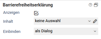 | Anzeigen | Ob eine Barrierefreiheitserklärung in der Fußzeile des Formulars angezeigt werden soll. |
