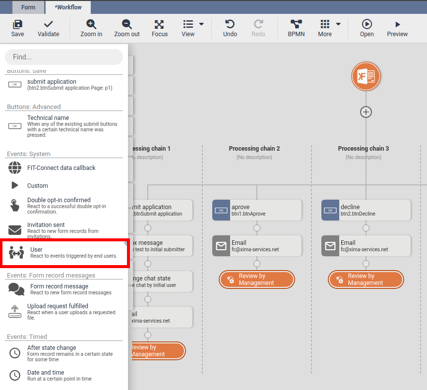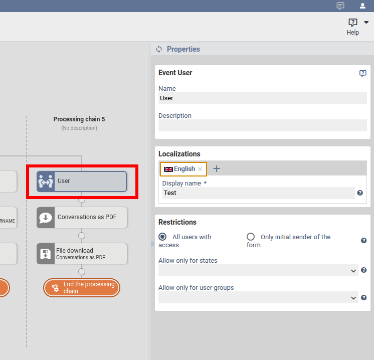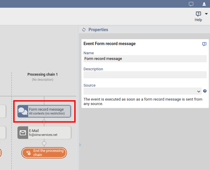 | Source | Available options are: Inbox, Portal, Workflow The event / processing chain is triggered only for the selected source. |